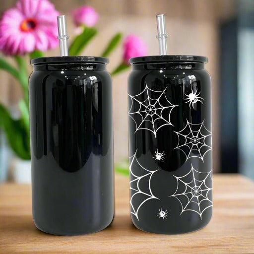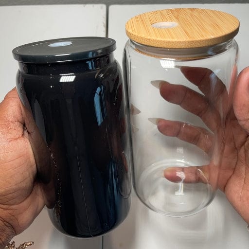 BLACK 16 OZ BLANK GLASS CAN WITH LID & STRAW