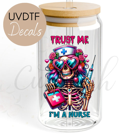 Trust Me I'm A Nurse Skeletal - Funny Sarcastic UVDTF Decal (CNDU39)
