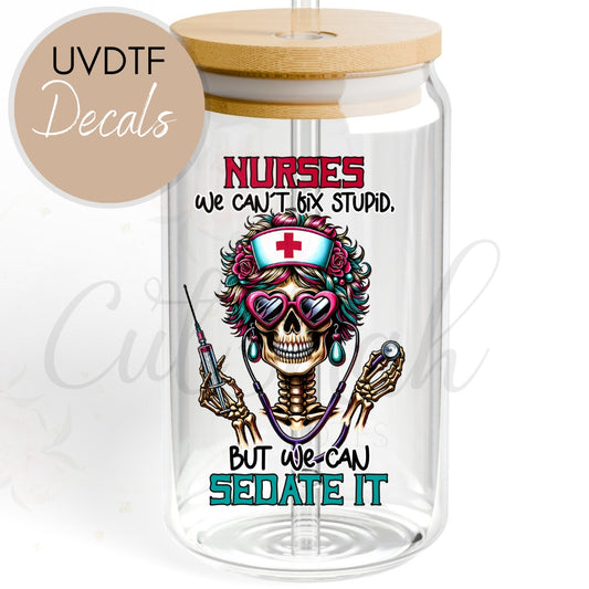 Nurses Sedate It Skeletal - Funny Sarcastic UVDTF Decal (CNDU30)