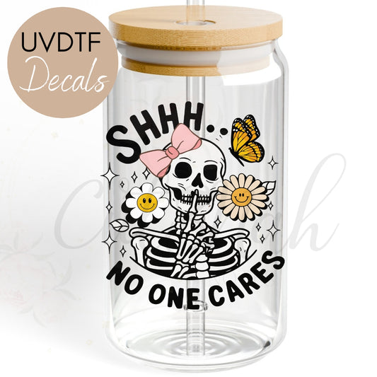 No One Cares Skeleton - Funny Sarcastic UVDTF Decal (CNDU43)