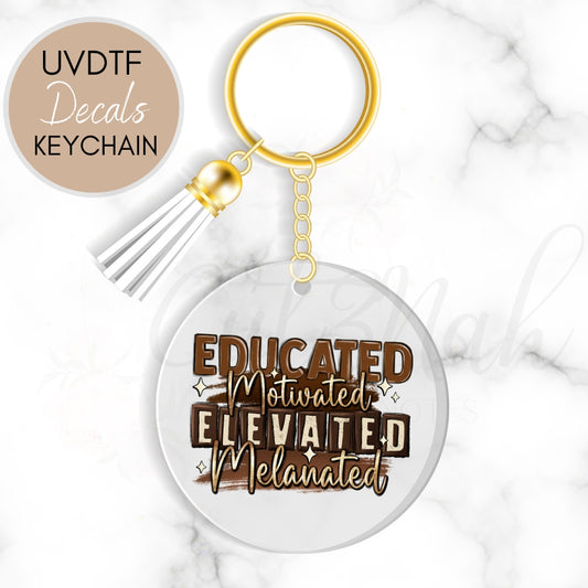 Educated Motivated Elevated Melanated - Affirmation Inspirational UVDTF Keychain Decal (CNKDAI4)